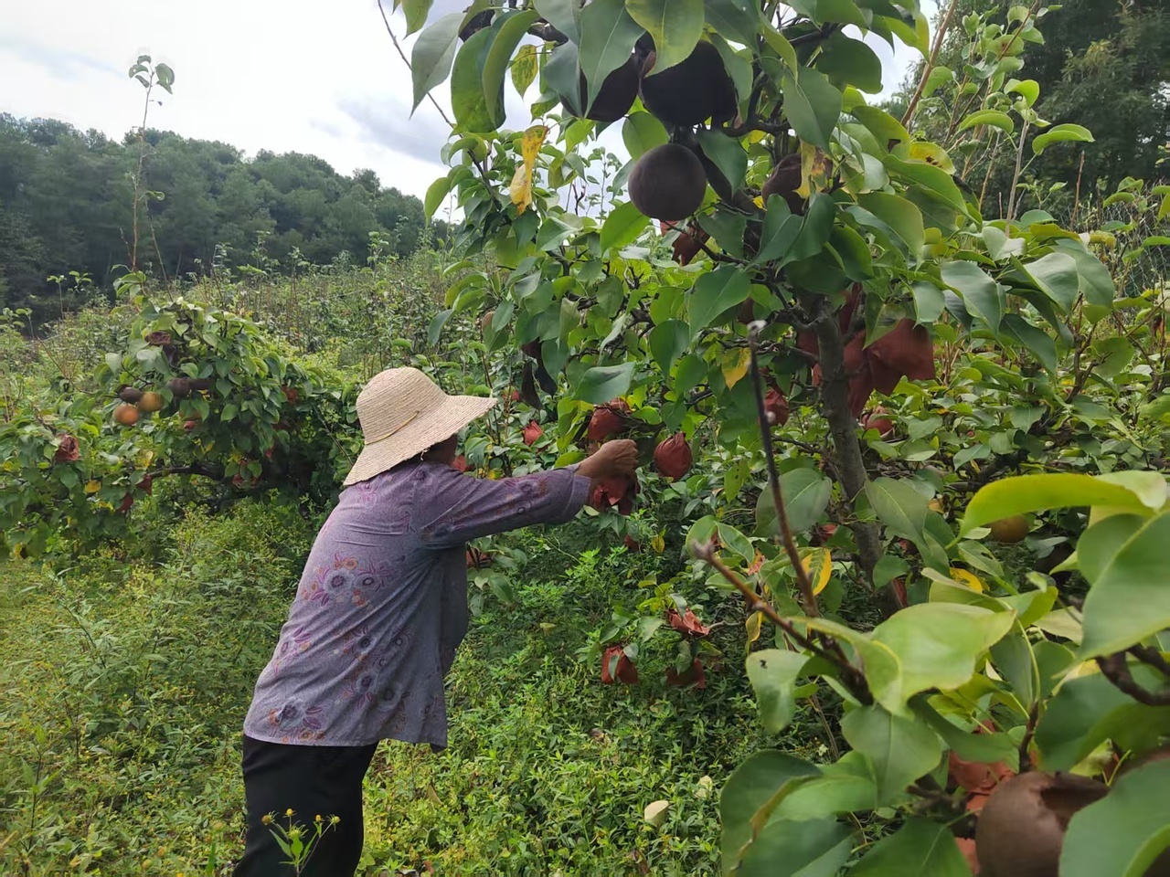 这里的村民们正进行梨子最后批次的采摘,为梨园的丰收画上圆满句号。只见果农们熟练地穿梭在梨树间,轻轻稳稳地托住梨子,剪刀“咔哒”一声,饱满的梨子便落入掌心,随后果农小心翼翼地放进身边的竹篮。